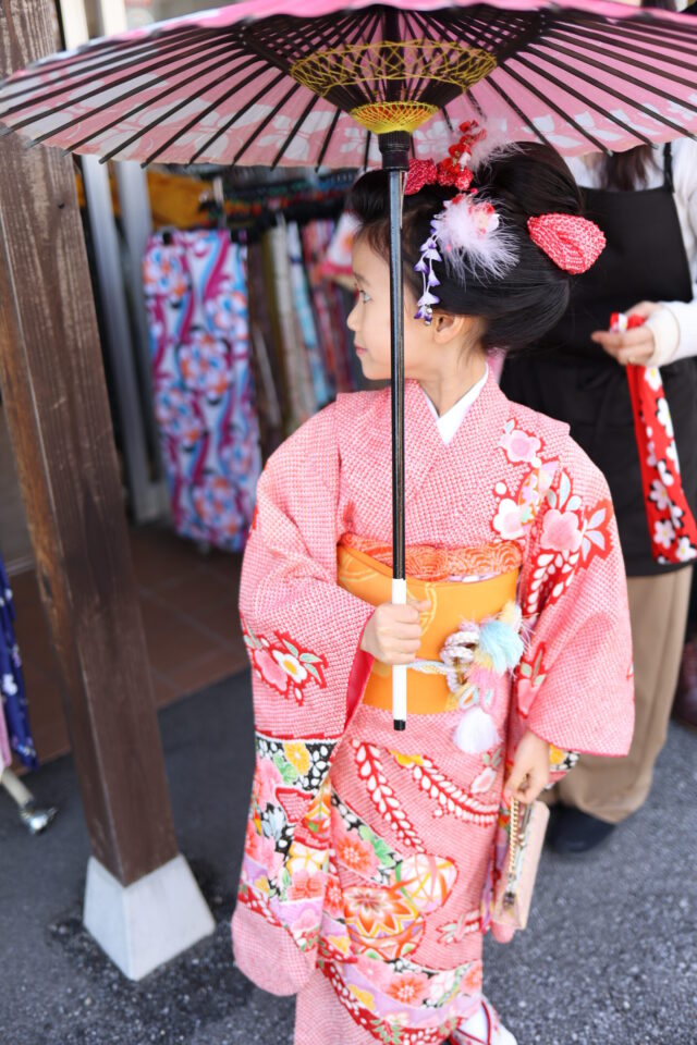 そして、当日の着物選びの時間は、まさに「楽しい時間」そのもの。主役の七歳お嬢様を筆頭に、お姉さま方も目を輝かせながら、ご自身の個性を表現しつつ、妹を引き立てる一着を選んでくださいました。