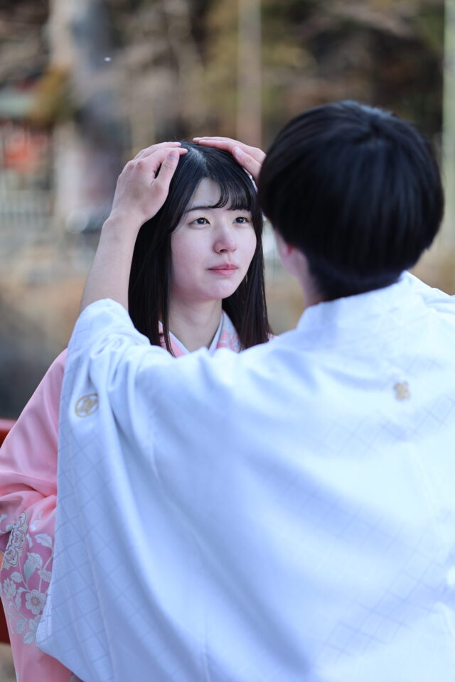 しだれ桜が舞う中、隣同士で手を合わせる姿は、神様もきっと微笑みながら見守ってくださいます。