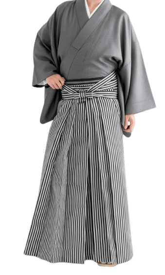 メンズ袴プラン 黒縞模様袴とグレー羽織着物