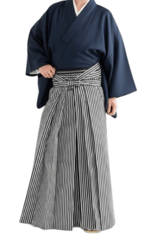 メンズ袴プラン 黒縞模様袴と紺色羽織着物