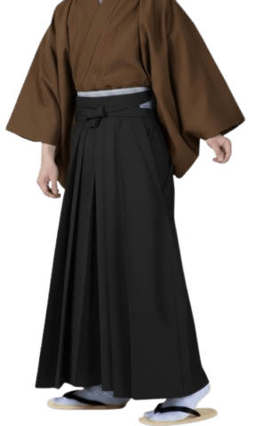メンズ袴プラン 茶色袴と黒地羽織着物