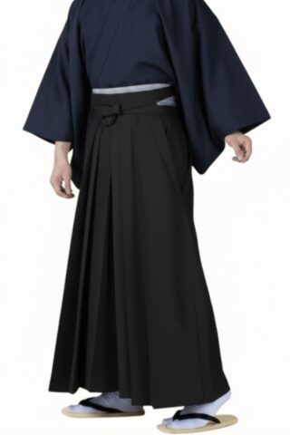 メンズ袴プラン 紺色袴と黒地羽織着物