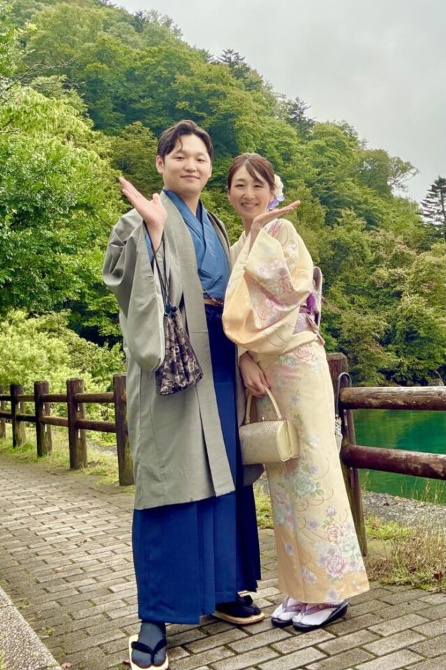 This dignified attire is perfect for formal occasions. The sight of you walking side by side against the beautiful backdrop of Nikko is like something out of a painting.
